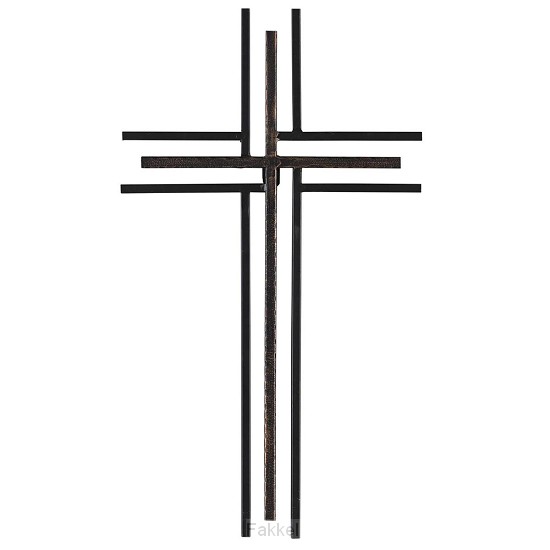 Dit zwarte metalen wandkruis heeft een gelaagd ontwerp en is 47,5 cm hoog.