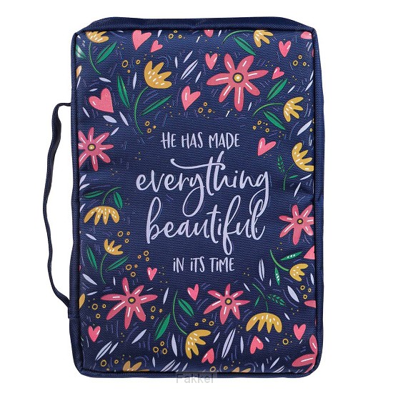 We can trust God's timing! The He Has Made Everything Beautiful Navy Floral Value Bible Cover is perfect for any woman with a youthful spirit. This Bible cover with its bright coral and yellow flowers will protect your Bibleâ€'the same book that promises all things will be brought to fullness and made beautiful in God's time!
