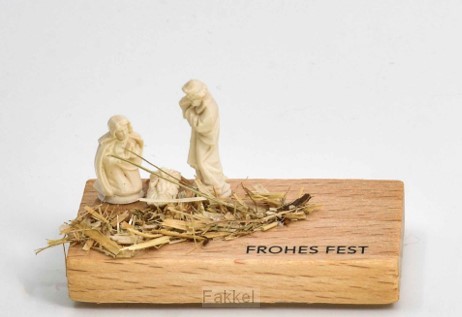Kerstfiguur natuursteen Maria Jozef Jezus wit.Tekst: Gods zegen. Materiaal: resin op steen 3cm - steen 4-6cm-0,5cm h