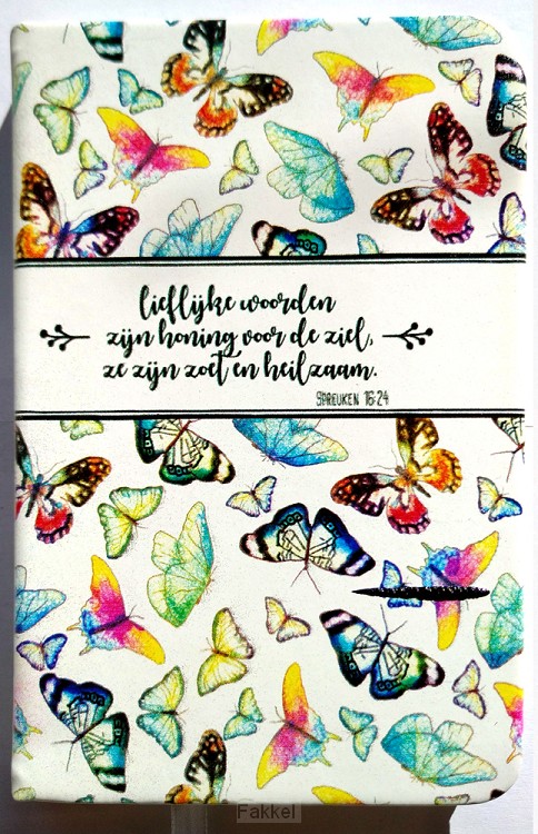 Dit zacht kunstleren schrijfboek heeft de geillustreerde afbeelding van de tekst: 'Lieflijke woorden zijn honing voor de ziel, ze zijn zoet en heilzaam. Spreuken 16:24'