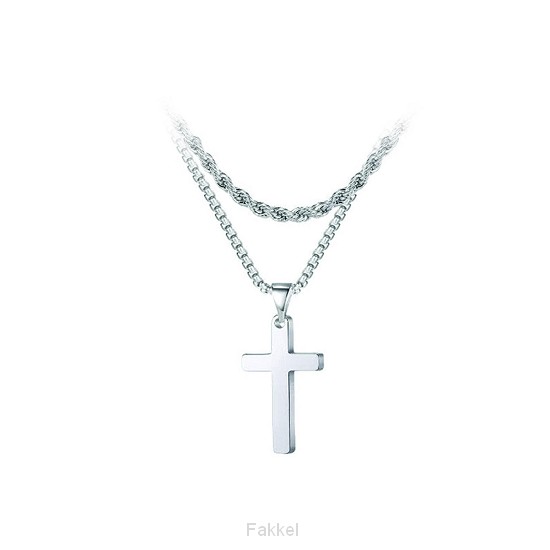 Necklace Cross silver double chains