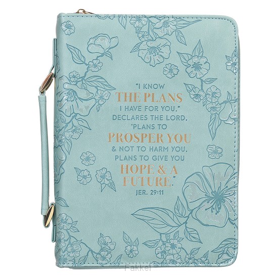 The Plans to Prosper You Teal Faux Leather Fashion Bible Cover is a stylish way to protect your Bible with a message that will fill your heart with confidence, knowing that God has good plans for your life.