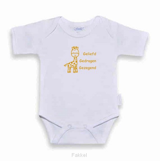 Baby romper kleur wit, maat: 62-68, Materiaal 100% katoen. Tekst: Geliefd Gedragen Gezegend